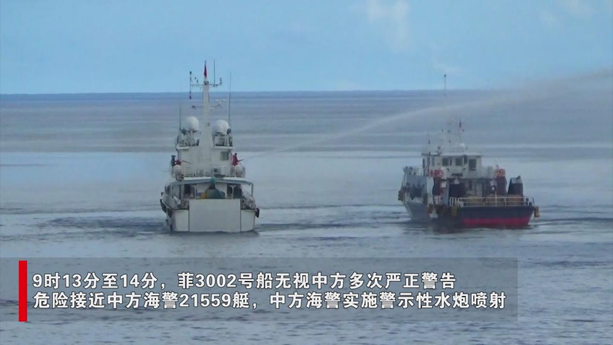 現場視頻顯示:菲方挑釁升級,中國海警首次在鐵線礁採取水炮警示