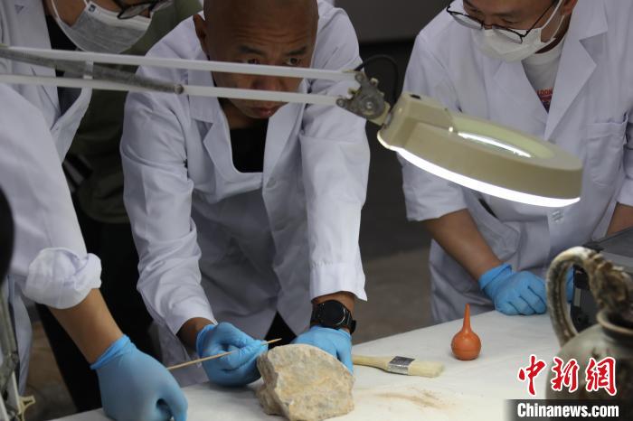 5月20日,河南洛陽,龍門石窟研究院的“文物醫生”對文物進行修復。中新社記者 闞力攝
