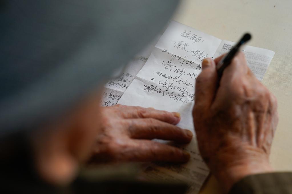 ↑劉壽山用筆寫下自己的人生經歷(4月9日攝)。