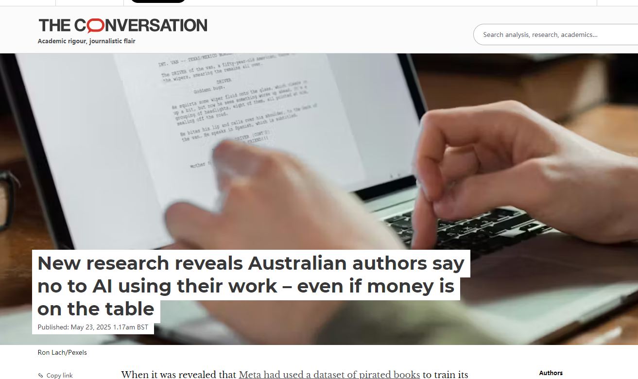 最新調查顯示,大多數澳大利亞作家不願自己的作品被用於訓練人工智能,即使獲得報酬也不例外。他們擔心這不僅關乎版權問題,更關乎同意、信任以及他們職業的未來。此外,作家們還擔憂生成式人工智能可能取代他們的創收工作。70%的受訪者認為人工智能可能會對他們的職業構成威脅。這種擔憂加劇了本已嚴峻的經濟現實,許多作家只能通過其他工作或伴侶的支持來維持寫作生涯。