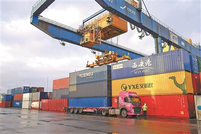 中歐班列重要樞紐——德國杜伊斯堡貨運場站內來自中國的集裝箱。