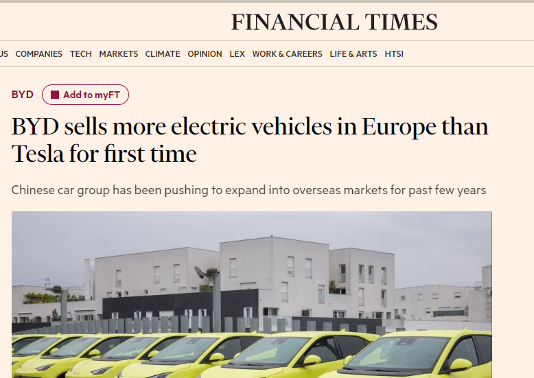 比亞迪4月歐洲銷量首超特斯拉,歐洲電動汽車市場迎來“分水嶺時刻”