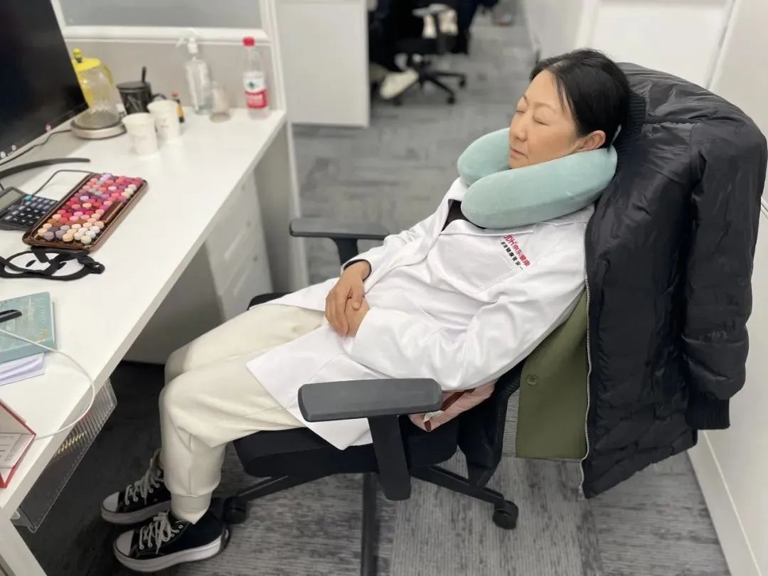 中西醫結合 副主任醫師、京東家醫睡眠管理師 賀琳示範如何在工位午睡
