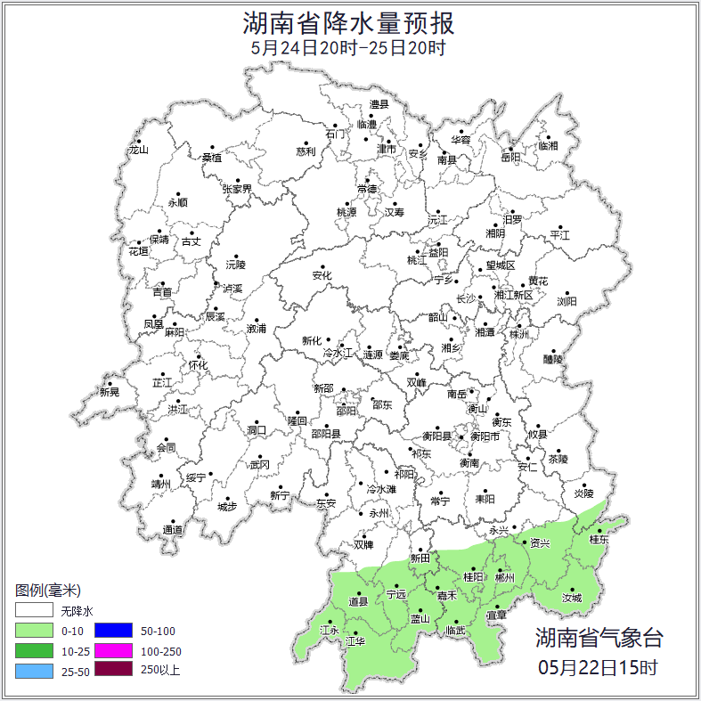 *24日晚上至25日白天,*湘南多雲有陣雨,其他地區多雲到晴天,湘西、湘北清晨有霧;北風轉南風2~3級;最高氣温湘中以北22~26℃,其他地區19~22℃,最低氣温16~19℃。