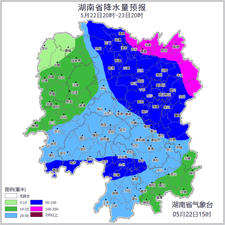 *23日白天,**湘南陰天有中到大雨、局地暴雨,*湘西北多雲,其他地區小到中雨轉多雲;南風轉北風3~4級,陣風9~11級;最高氣温25~29℃,最低氣温19~22℃。