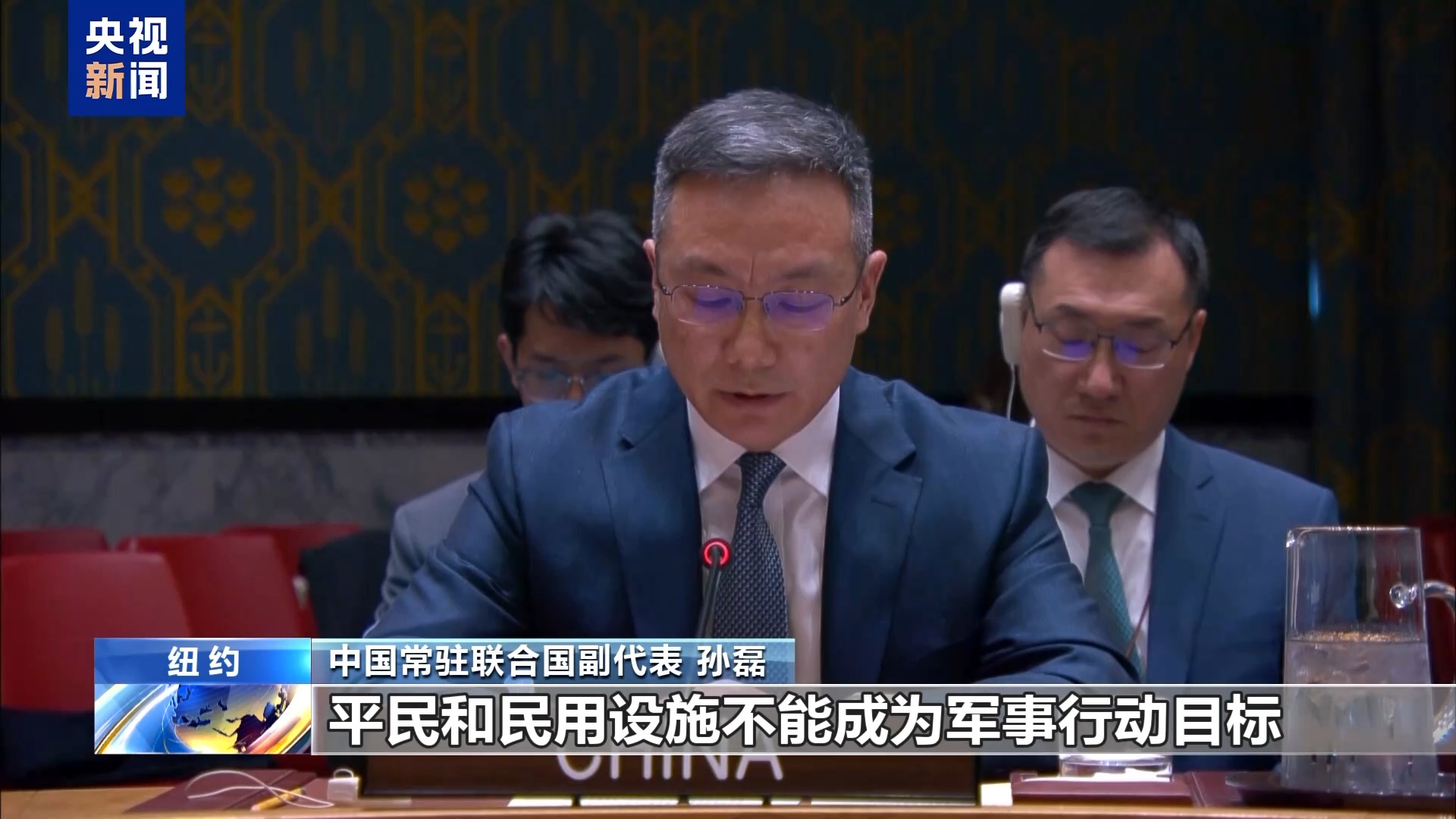 *中國常駐聯合國副代表 孫磊:*平民和民用設施不能成為軍事行動目標,聯合國人員和人道工作者安全必須得到保障,人道援助不能被政治化,糧食藥品等基本物資不能被武器化,這些公認的國際人道法基本準則卻在衝突中被一次次突破和違反。遵守人道法是各方必須履行的義務,不是可有可無的選擇,任何雙重標準和選擇性適用都會侵蝕國際法治基礎、鼓勵更多違法行為。