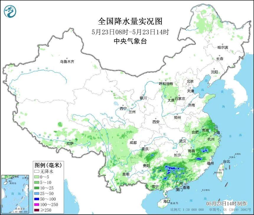 今天(5月23日)白天,南方的強降雨整體東移南壓,主要集中在湖南南部、廣西中東部、廣東、福建西北部等地,局地6小時累計降水量超過50毫米。不僅如此,上述多地還出現了短時強降雨,局部雨勢十分猛烈。