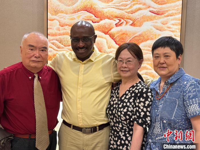 5月22日晚,來自烏干達的西蒙·穆龍閣(SIMON MULONGO)(左一)與雲南昆明醫科大學第一附屬醫院的三位醫生(左起分別為納玉萍、鍾穎、李建生)重逢。陳晨攝