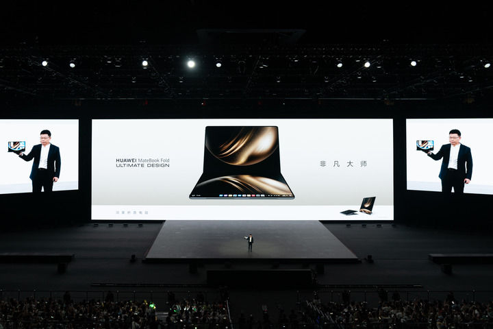 2025年5月19日,華為常務董事、終端BG董事長餘承東在成都舉辦的發佈會上介紹HUAWEI MateBook Fold非凡大師電腦。當日,華為在成都正式發佈兩款鴻蒙電腦,這是鴻蒙操作系統首次在電腦端正式發佈,在電腦操作系統領域邁出新步伐。新華社記者 胥冰潔 攝