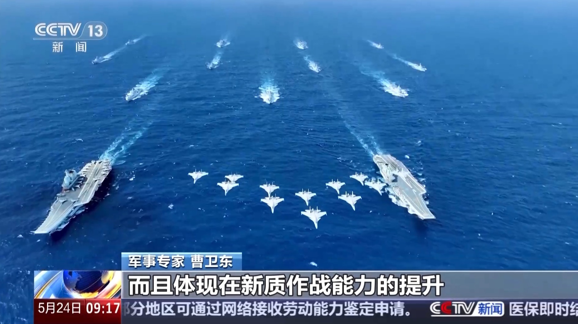 *軍事專家 曹衞東:*海軍航空兵不但有殲-15飛鯊,可能下一步是殲-35這種隱身的戰機,我們過去在反潛的上面只能靠反潛的直升機,而現在有了運-8的反潛巡邏機,就可以快速地大面積地在南海、東海搜索敵人的潛艇,這樣就有效地維護了我們國家海上方向的安全。所以從這幾型裝備就可以看到,人民海軍的發展建設,在完善自己武器裝備、補齊短板的同時還在創新,還在領跑,不但體現在數量多,而且體現在新質作戰能力的提升。