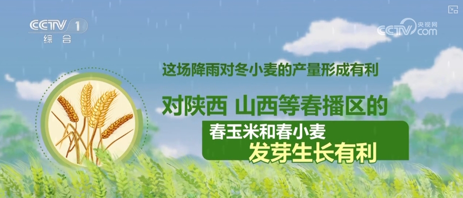 氣象分析師胡嘯介紹,從冬小麥的這個生長週期來看,目前,我國的湖北、河南南部的冬小麥已經逐漸成熟,湖北的收穫都超過九成,大部地區冬麥區還處在一個灌漿期。這場降雨對冬小麥的產量形成是有利的,也對像陝西、山西等春播區的春玉米和春小麥的發芽生長也是有利的。