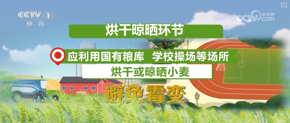 同時,確保雨後農機能儘早下田搶收,減少不必要的損失。到了烘乾晾曬環節,應利用國有糧庫、學校操場等場所烘乾或晾曬小麥,避免黴變。