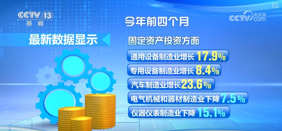從主要數據指標來看,2025年前4個月,宏觀政策組合效應持續釋放,生產供給保持較快增長。在“兩新”政策加力擴圍和產業升級帶動下,裝備製造業持續較快增長。消費品以舊換新政策效應持續釋放,國內需求穩步擴大。