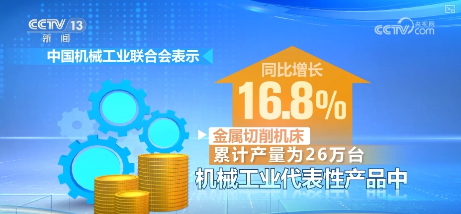 中國機械工業聯合會表示,機械工業代表性產品中,金屬切削機牀累計產量為26萬台,同比增長16.8%;工業機器人累計產量為22.1萬套,同比增長34.1%,增長勢頭強勁。