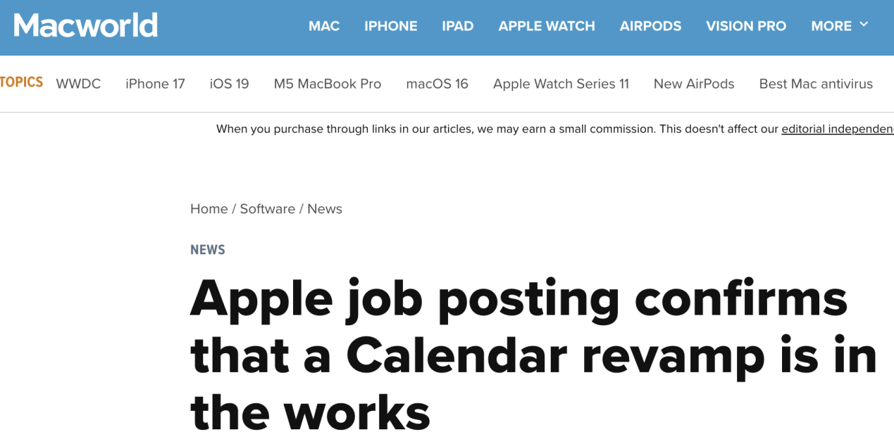此前,彭博社的馬克・古爾曼透露,蘋果將在 iOS 19 中革新日曆應用,但未透露太多細節。另有消息披露,蘋果於 2024 年收購了 Mayday Labs,該公司曾開發 AI 日曆應用 Mayday,該應用專注於幫助用户組織、保護和管理日常事務,不過已於去年 5 月關閉。