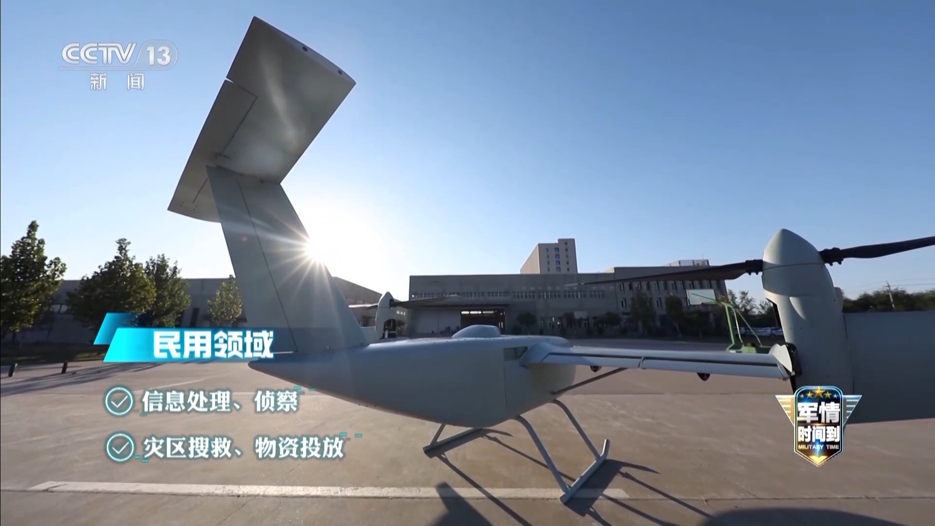 *中國航天空氣動力技術研究院 房帥:*剛才我們提到的它的一些特點,我們都可以用到軍用領域上。比如説未來我們可以在艦艇的甲板上起飛。因為它對跑道限制比較少。另外一個它可以做戰場的懸停、低空飛行,可以投放物資、投放一些彈藥等等。