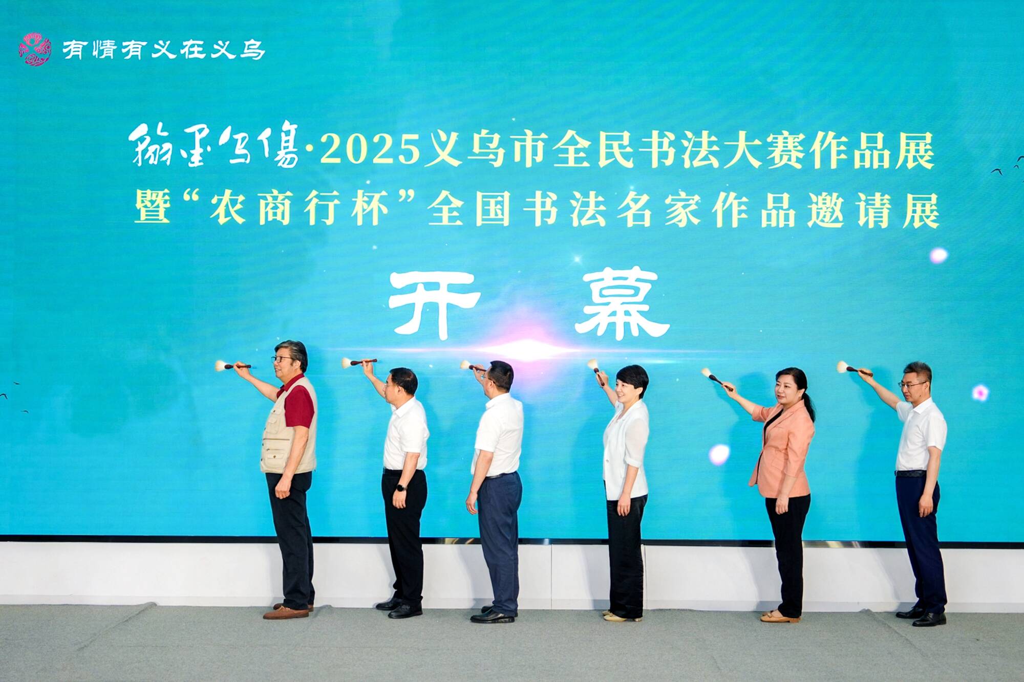 5月24日,翰墨烏傷·2025義烏市全民書法大賽作品展暨“農商行杯”全國書法名家作品邀請展在義烏美術館隆重開幕。這場匯聚全民智慧與藝術才情的文化盛宴,以筆墨為媒,書寫義烏千年文脈與時代新篇,吸引眾多書法愛好者、文化界人士及市民到場共襄盛舉。