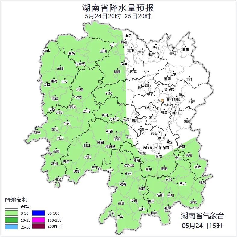 25日晚上至26日白天, 多雲間晴天,其中永州南部局地陣雨,湘西湘南清晨有霧;南風2~3級;最高氣温26~29℃,最低氣温16~18℃。