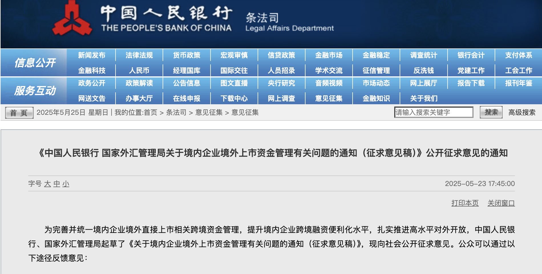 【環球網財經綜合報道】據央行消息,為完善並統一境內企業境外直接上市相關跨境資金管理,提升境內企業跨境融資便利化水平,紮實推進高水平對外開放,中國人民銀行、國家外匯管理局起草了《關於境內企業境外上市資金管理有關問題的通知(徵求意見稿)》(以下簡稱《通知》),並向社會公開徵求意見。