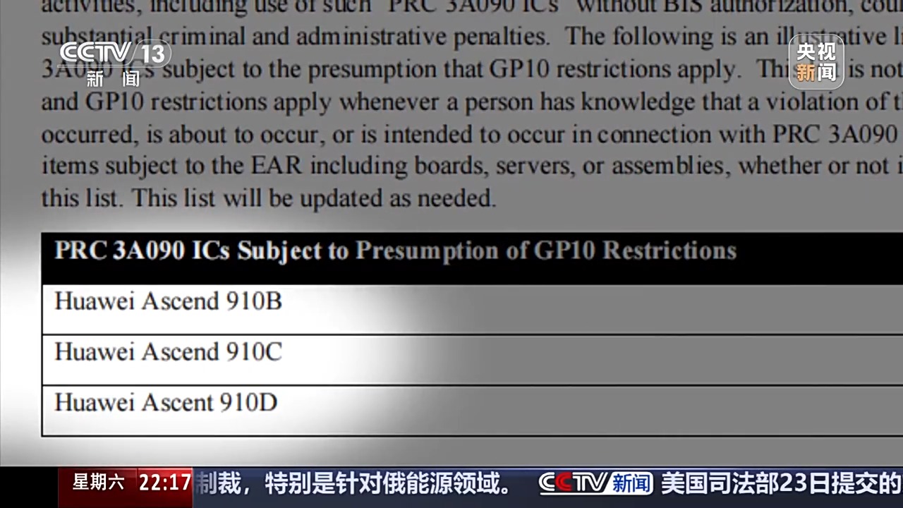 這裏是華盛頓特區的美國商務部總部,十幾天前,其工業與安全局發佈的關於AI芯片出口管制的指南,再次以霸凌和威脅的手段,意圖在全球市場,封殺中國的高端芯片。這份指南,直接點名華為“昇騰”AI芯片,聲稱在全球任何地方使用“昇騰”芯片,都將違反美國出口管制規定。從15日到22日,8天時間,中國商務部和外交部,已先後五次對這份所謂的指南,進行了回應。