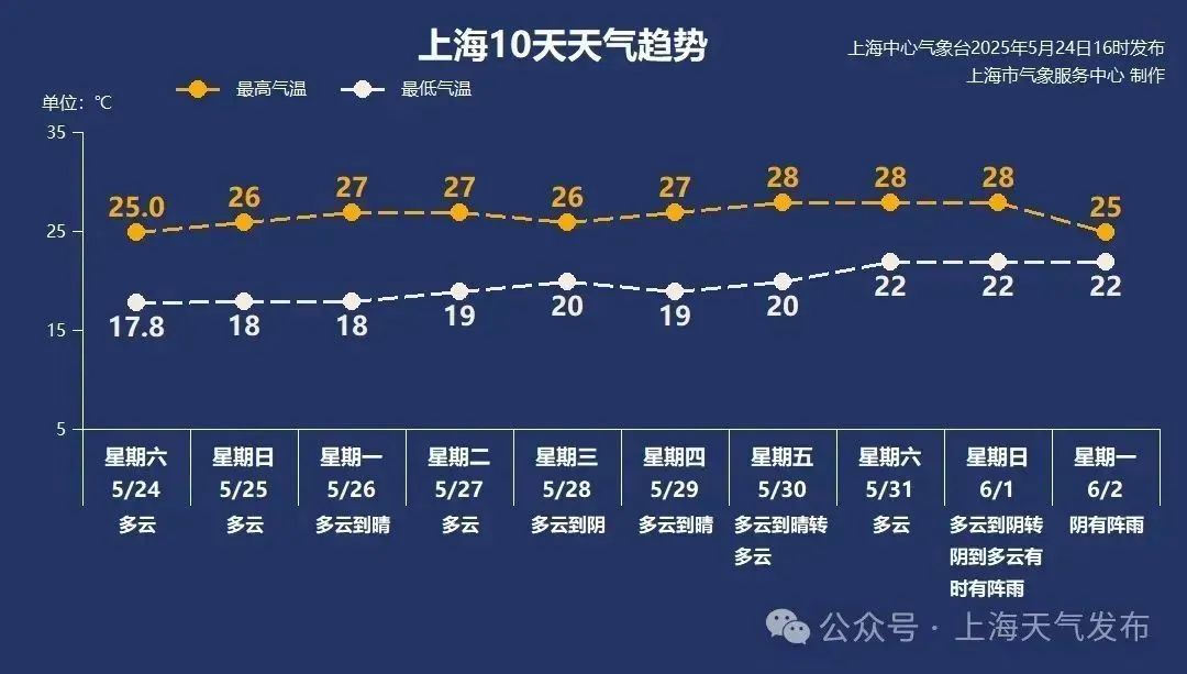 28日前後,上海可能會出現一點“散裝”小雨,未來一週都沒有“熱”情炙烤,也沒有雨水叨擾。