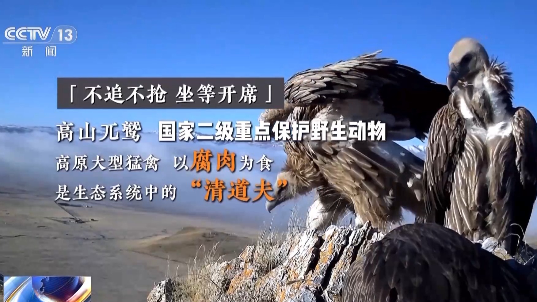 高山兀鷲,國家二級重點保護野生動物,高原大型猛禽,以腐肉為食,是生態系統中的“清道夫”。