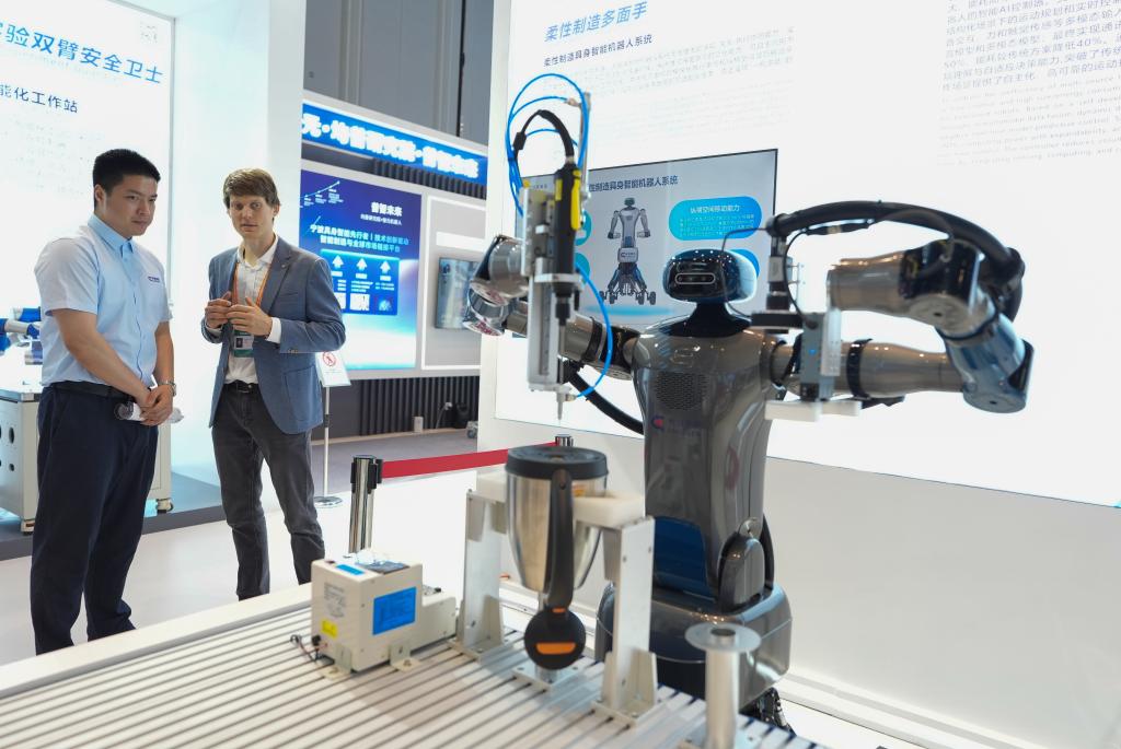 5月22日,客商在“數智中東歐”展區瞭解具身智能機器人系統。新華社記者 黃宗治 攝
