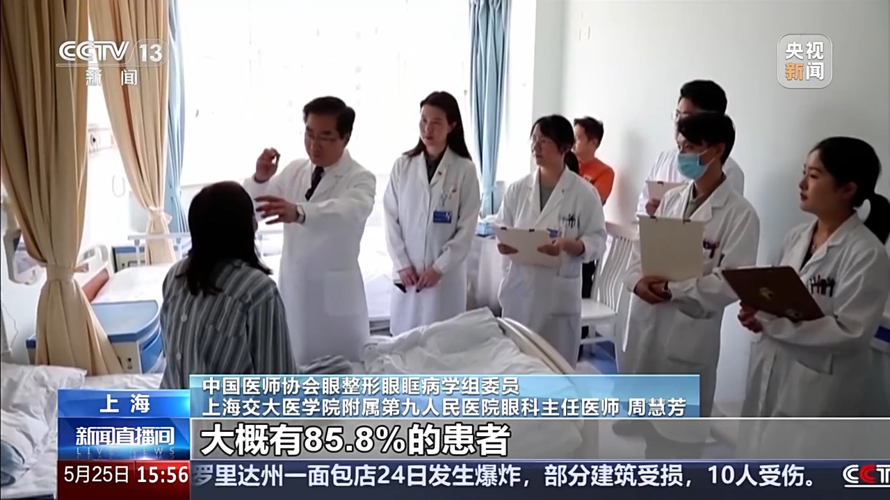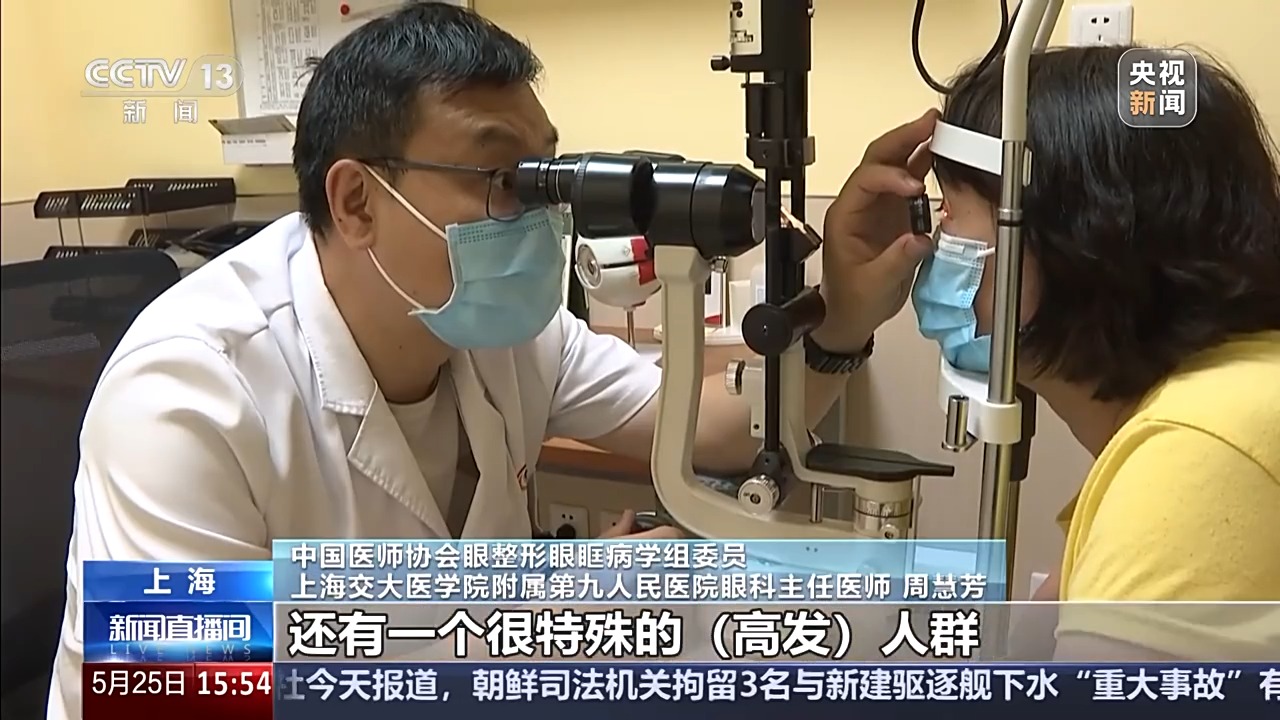 *中國醫師協會眼整形眼眶病學組委員、上海交大醫學院附屬第九人民醫院眼科主任醫師 周慧芳:*還有一個很特殊的高發人羣是20到30歲的青年人。青年人有兩部分的發病的起因,一個是工作壓力比較大,工作壓力也會導致他自身免疫狀態被打破而出現甲狀腺眼病的改變。還有一個羣體是女性生育人羣,在生育過程中,她的一些激素水平會發生變化,自身免疫的功能發生變化,從而出現了眼睛的改變。