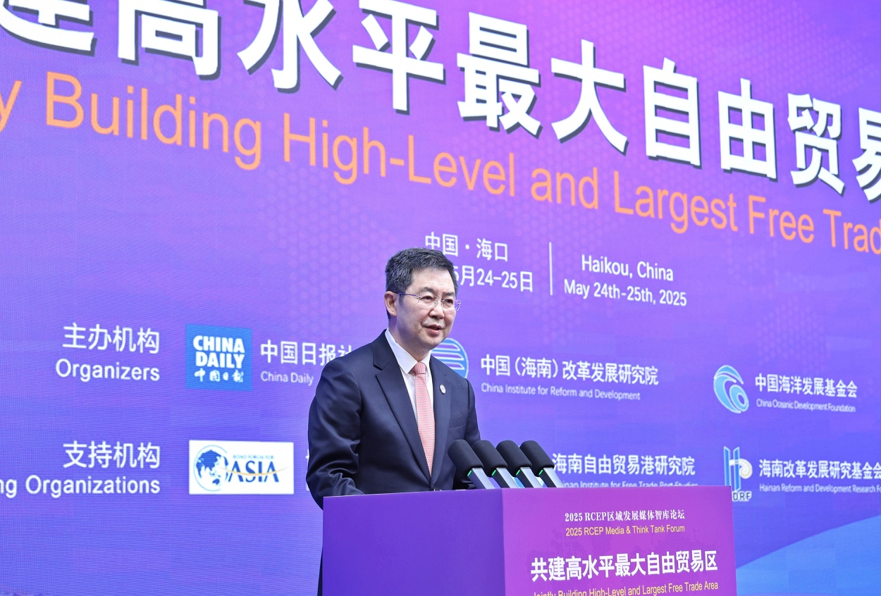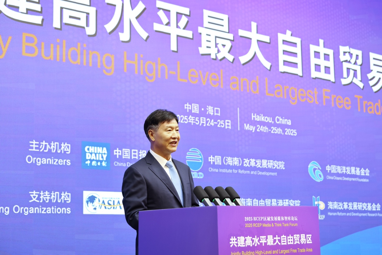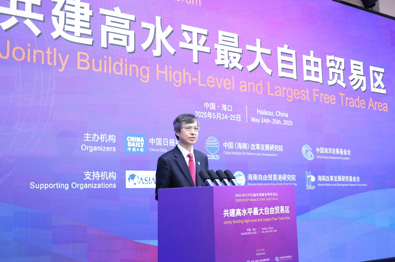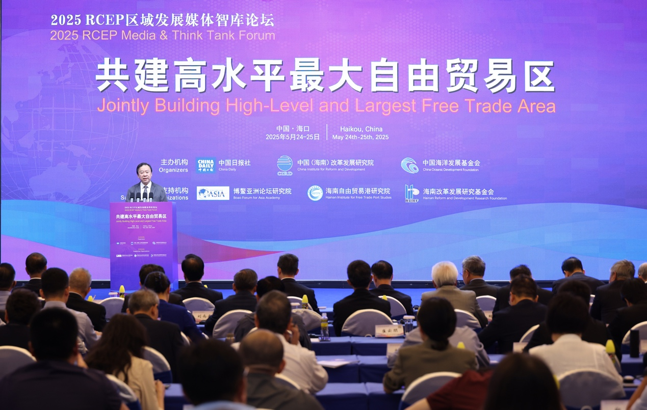5月24—25日,由中國日報社、中國(海南)改革發展研究院、中國海洋發展基金會主辦的“共建高水平最大自由貿易區——2025 RCEP區域發展媒體智庫論壇”在海南省海口市舉行。來自中國、日本、韓國、澳大利亞、文萊、柬埔寨、印度尼西亞、老撾、馬來西亞、緬甸、菲律賓、新加坡、泰國、越南等14個國家的主流媒體、智庫、企業負責人,以及來自東盟秘書處、中日韓合作秘書處、RCEP支持機構、世界自由區組織等國際組織的代表共約300人蔘加論壇,為區域合作增進共識、堅定信心、形成合力積極建言獻策。本次論壇由博鰲亞洲論壇研究院、海南自由貿易港研究院、海南改革發展研究基金會支持。