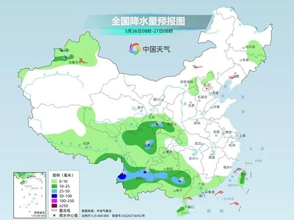 據中央氣象台,明天,新疆伊犁河谷、西藏東南部、甘肅南部、陝西西南部、四川中北部、雲南大部、貴州南部、廣西中北部、海南島北部、台灣島等地部分地區有中到大雨,其中,雲南西部和北部等地部分地區有暴雨。