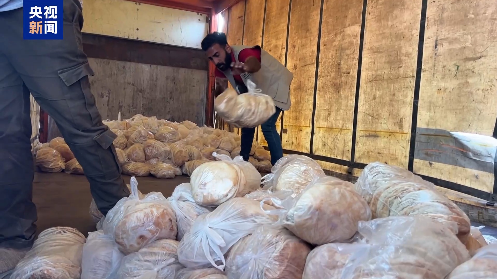 *總枱報道員 穆罕默德·沙爾:*我現在所在的是一個流離失所者營地,營地的負責人正在通過“世界中央廚房”組織與聯合國世界糧食計劃署協調,為民眾分發大餅。目前在運入麪粉有限的情況下,當地部分大餅店得以重新運轉,但與居民的實際的需求相比,這些麪粉仍遠遠不夠。