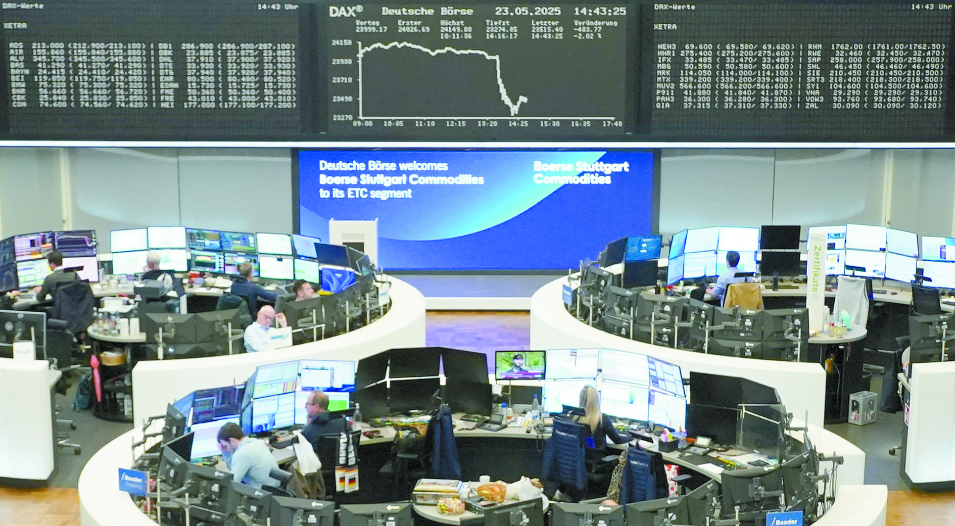 【環球時報駐德國特約記者 青木 環球時報特約記者 裴茗】當地時間23日,美國總統特朗普在社交媒體上連發兩帖,矛頭直指歐盟和蘋果。他稱,歐盟“難打交道”“佔美國便宜”,並威脅自6月1日起對歐盟商品徵收50%關税。特朗普還説,凡是在國外製造並在美國銷售的蘋果手機,應該面臨至少25%的關税。路透社形容,持續數週的關税戰緩和帶來短暫喘息後,全球市場再度被美政府發出的“雙重威脅”攪動:美歐主要股指下跌,美元走軟,金價上漲。據德國《法蘭克福匯報》、歐洲動態網等外媒報道,白宮的最新言論似乎給美歐達成協議的希望潑了一盆冷水,引發歐盟方面的強烈不滿。對於蘋果公司受到的威脅,路透社援引分析人士的話説,無論是蘋果手機被加税還是生產線轉移至美國,對美國消費者而言都意味着,相關商品的價格將以數百美元的幅度上漲。