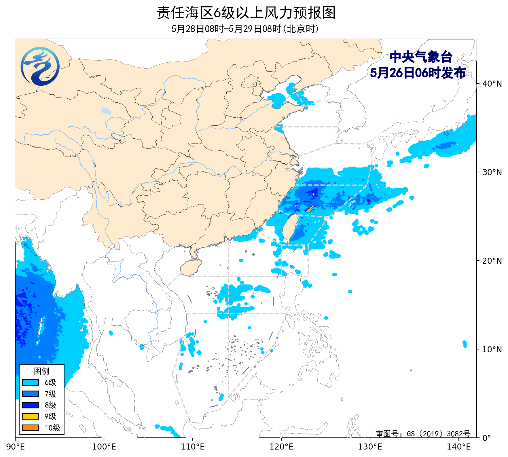 28日08時至29日08時,東海南部海域將有5~6級、陣風7級的偏東風增大到7~8級、陣風9級的東北風,台灣以東洋麪將有4~5級的偏東風增大到6~7級、陣風8級的偏南風,渤海海峽將有4~6級、陣風7級的東南風到偏南風,東海北部海域將有4~6級、陣風7級的偏東風,台灣海峽將有4~6級、陣風7級的東北風到偏北風。