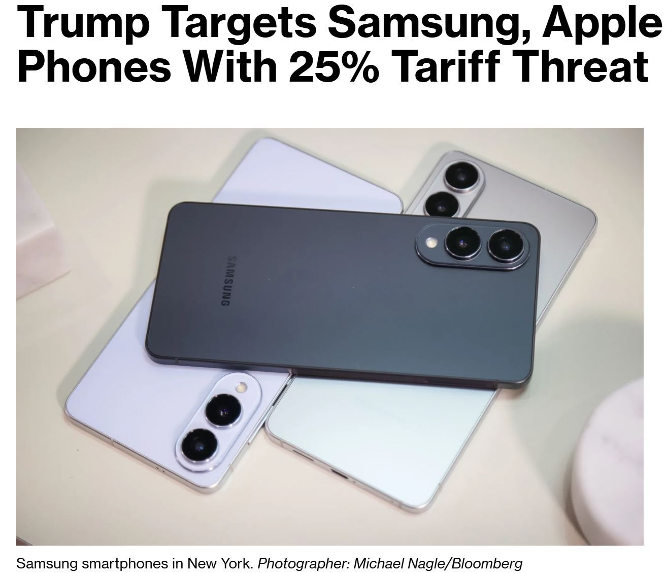 同樣是在23日,特朗普還威脅説,凡是在國外製造並在美國銷售的蘋果手機,都應該被徵收至少25%的關税。韓國三星電子公司和其他生產手機的企業也將面臨美國的關税。相關政策預計從6月底開始實施。