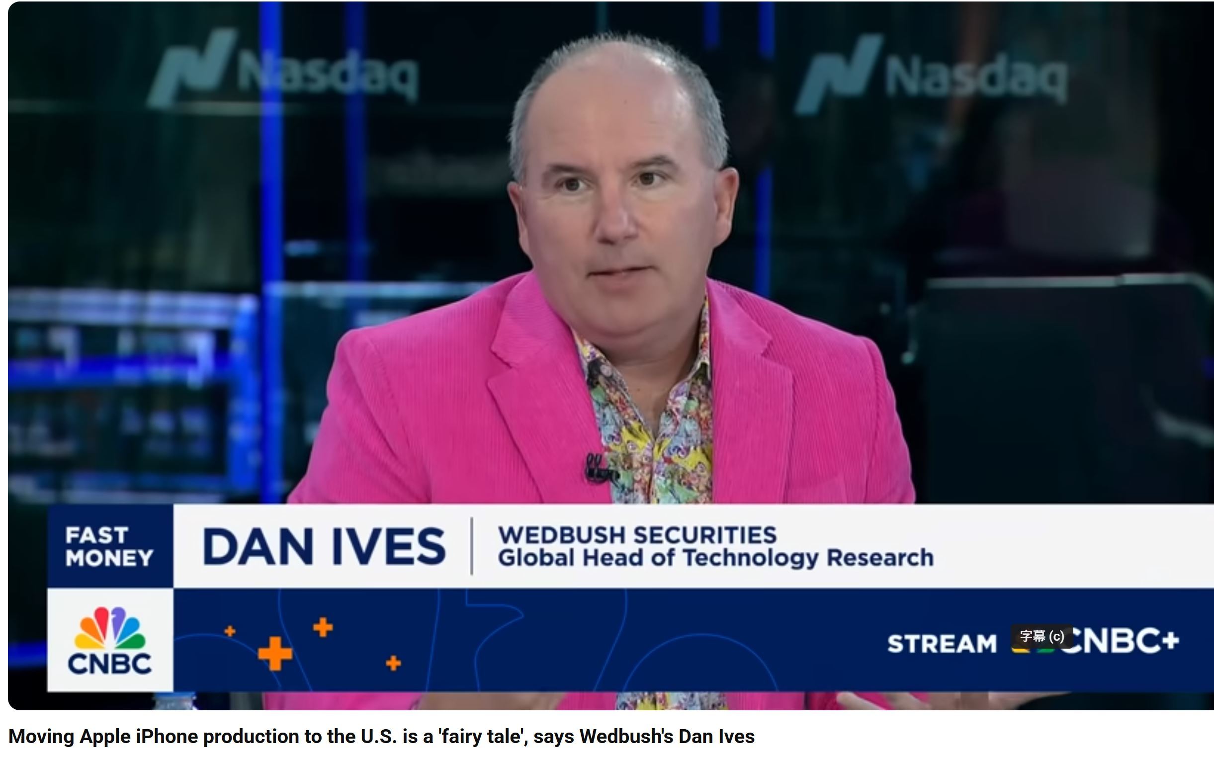 美國韋德布什資產管理公司分析師丹尼爾·艾夫斯直言,在美國製造蘋果手機“根本就是一個童話故事,很難在現實生活中發生”。