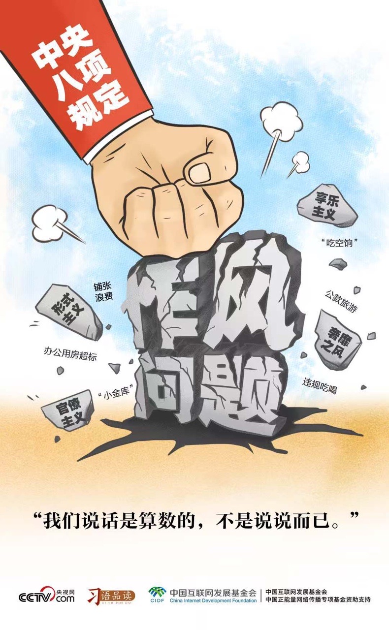 2012年12月,習近平總書記在主持中央政治局會議,審議通過《十八屆中央政治局關於改進工作作風、密切聯繫羣眾的八項規定》時説了這樣一番話:“我們説了不是白説,説了必須做到,把文件上寫的內容一一落到實處。”