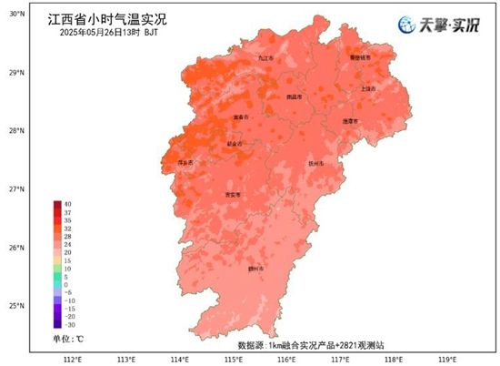今天白天,江西大部天氣以晴到多雲為主,南部出現零星小雨,14時前後,氣温在25至30℃之間,體感暖熱。