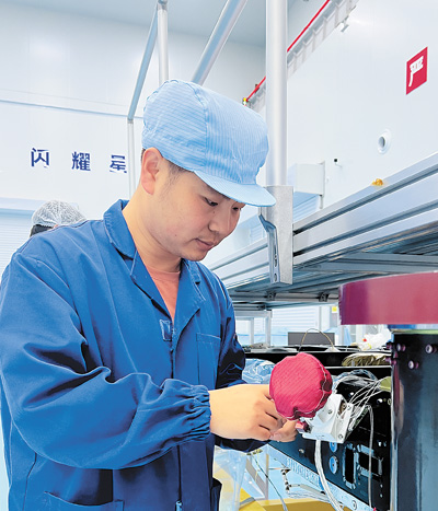 郭帥在檢查衞星敏感器的連接部件。微納星空公司供圖