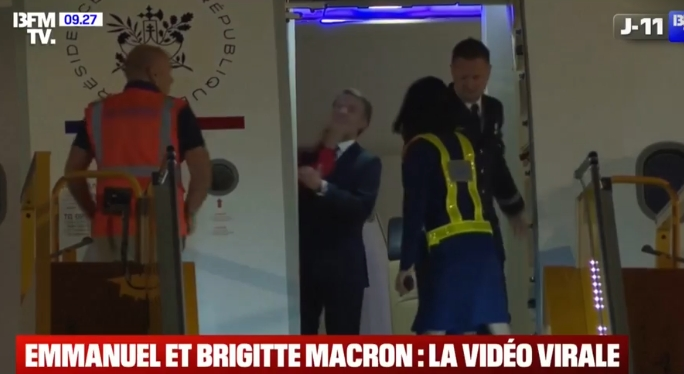法國RMC電台報道稱,視頻顯示布麗吉特的手疑似“打到”馬克龍的臉。愛麗捨宮對此表示否認,強調那是總統夫婦的“親密時刻”。