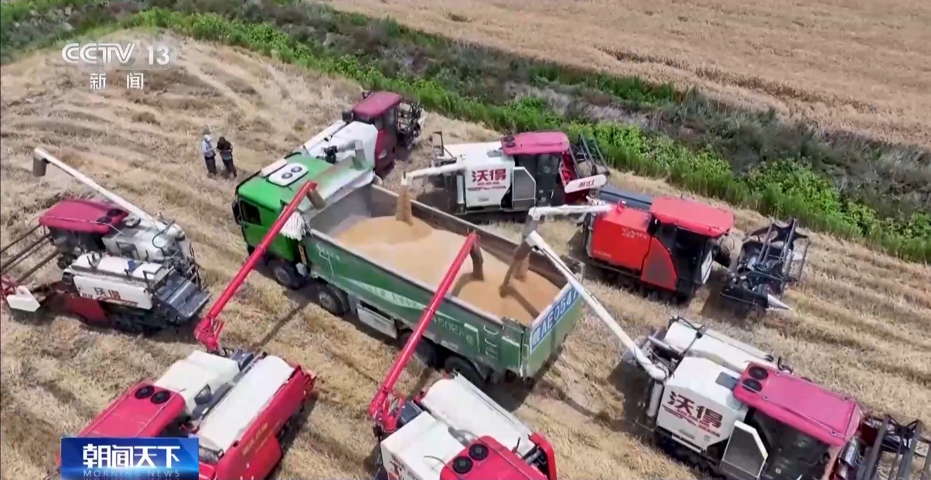 *總枱央視記者 田琪永:*我現在是在河南省駐馬店市,目前這裏的1100多萬畝小麥正大面積集中成熟,當地組織了3萬多台聯合收割機抓緊搶收,確保小麥收在適收期。