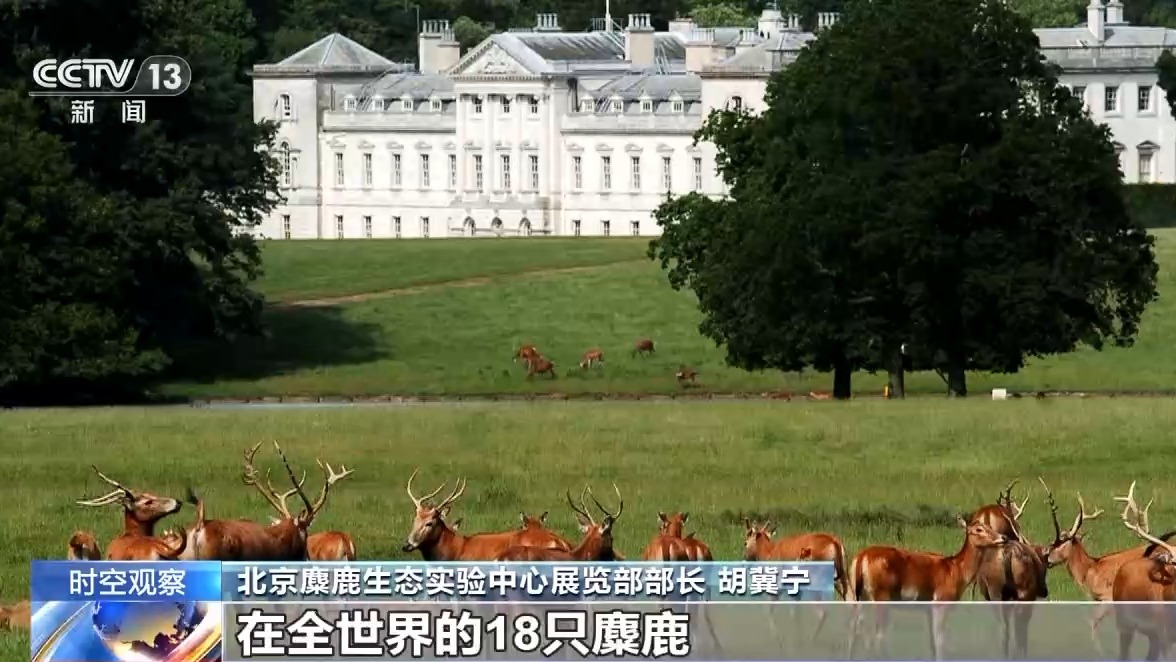 *北京麋鹿生態實驗中心展覽部部長 胡冀寧:*在清朝時期,各國政府也通過清朝政府索要和購買了一些麋鹿,分佈在世界各地的動物園中。英國的貝福特公爵,花重金買下了在全世界的18只麋鹿,圈養在自己的烏邦寺莊園裏面。