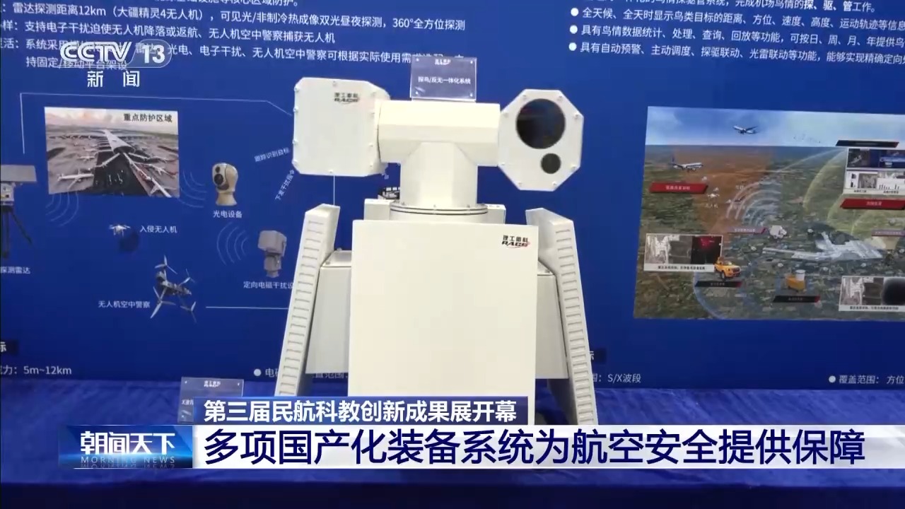 展會現場一套全國產化的“機場鳥情探驅管一體化系統”,為機場鳥情防範提供了新的解決方案。該系統由探鳥分系統和驅鳥分系統組成。