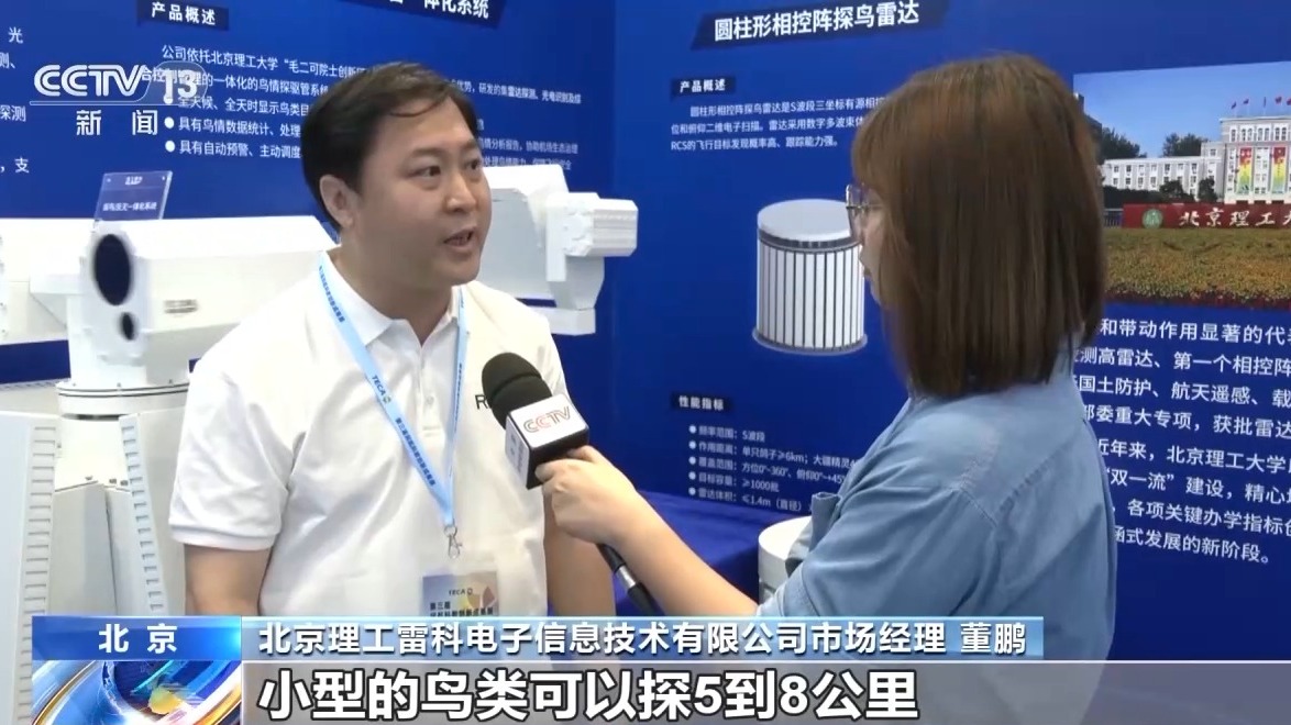 *北京理工雷科電子信息技術有限公司市場經理 董鵬:*對於小型的鳥類可以探5~8公里,對於鳥羣可以探到12公里以上,對於這些大鳥中鳥小鳥探測的準確率能達到99%以上。
