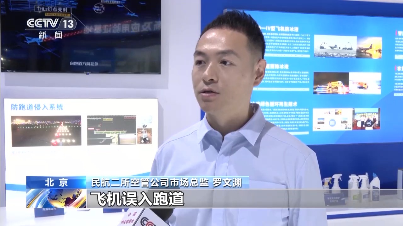 *民航二所空管公司市場總監 羅文淵:*我們的防跑道侵入系統是目前國內第一套完全國產自主化的防跑道侵入系統。飛機誤入跑道導致的跑道侵入事件發生的概率降低70%左右。