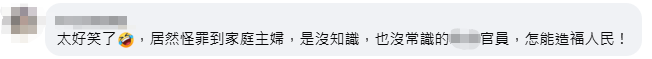 對此,有島內網友表示:“太好笑了,居然怪罪到家庭主婦,沒知識也沒常識的官員,怎能造福人民”“是有多看不起台灣人的智商?”