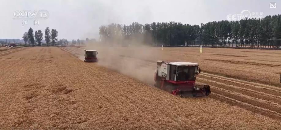 *總枱央視記者 田琪永:*我現在是在河南省駐馬店市,目前這裏的1100多萬畝小麥正大面積集中成熟,當地組織了3萬多台聯合收割機抓緊搶收,確保小麥收在適收期。