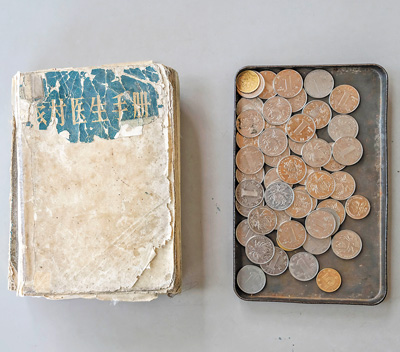 吳光潮翻閲了幾十年的《農村醫生手冊》和收取診療費的鐵皮盒。