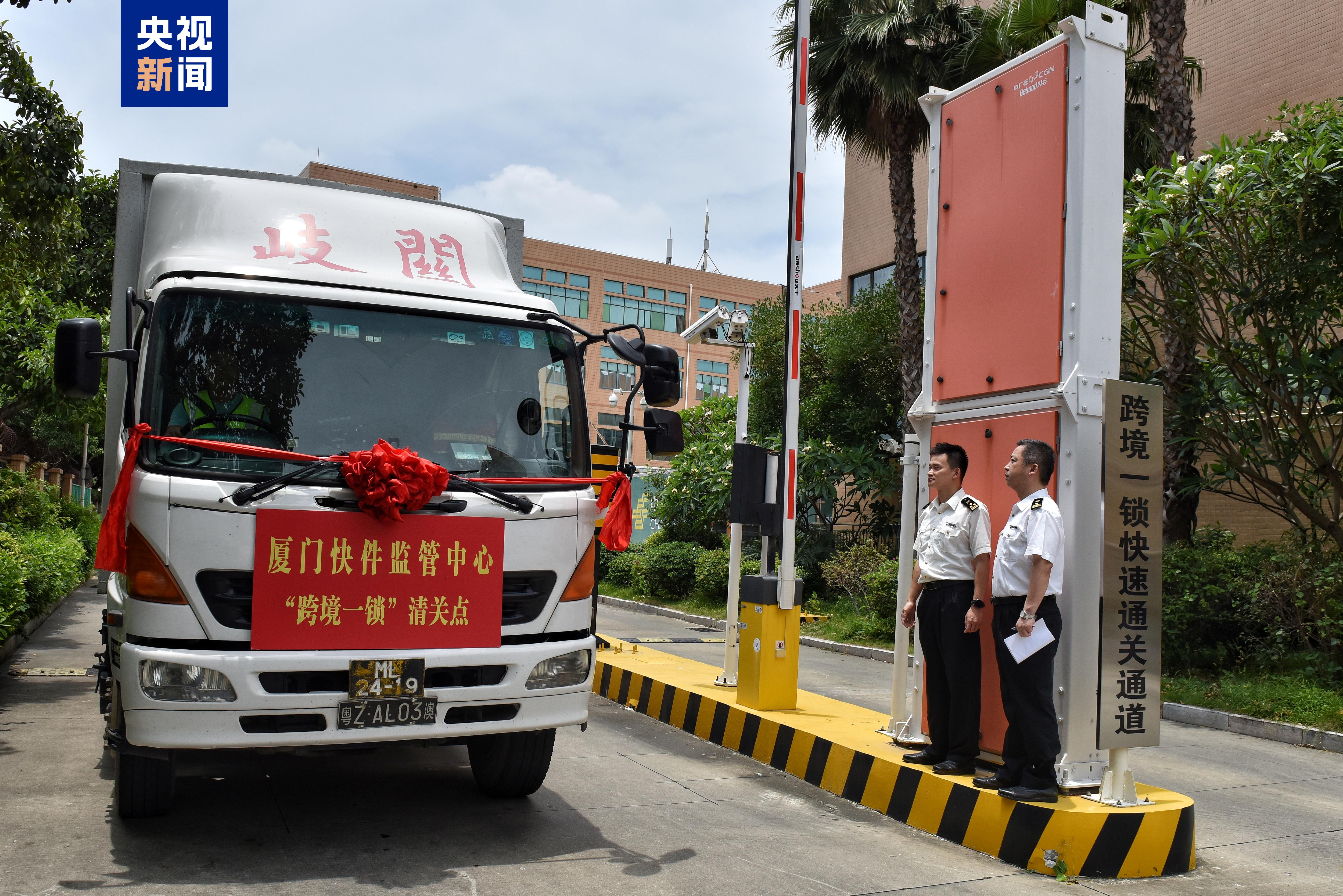 據廈門海關介紹,自“跨境一鎖”快速通關模式啓動以來,該關通過“早班車”計劃、“郵快跨”拼箱、拓展清關點等系列服務舉措,推動“跨境一鎖”業務穩步增長,並將業務範圍從“閩粵港”擴展至“閩粵港澳”。截至今年5月26日,該關監管該模式下各類貨物780車次、貨值超80億元。