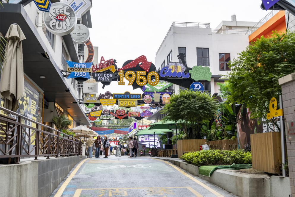 如今,“新印1950”已經成為一個包容性極強的新潮街區,紅磚牆與梧桐樹常讓老一代市民想起早年的廠區生活,到此流連打卡;電競、潮玩、首店經濟吸引許多年輕人前來消費。夜幕降臨,國際青年城市路邊音樂會如約而至,市民遊客圍在一起共同歌唱,音樂成為跨越國界的紐帶。