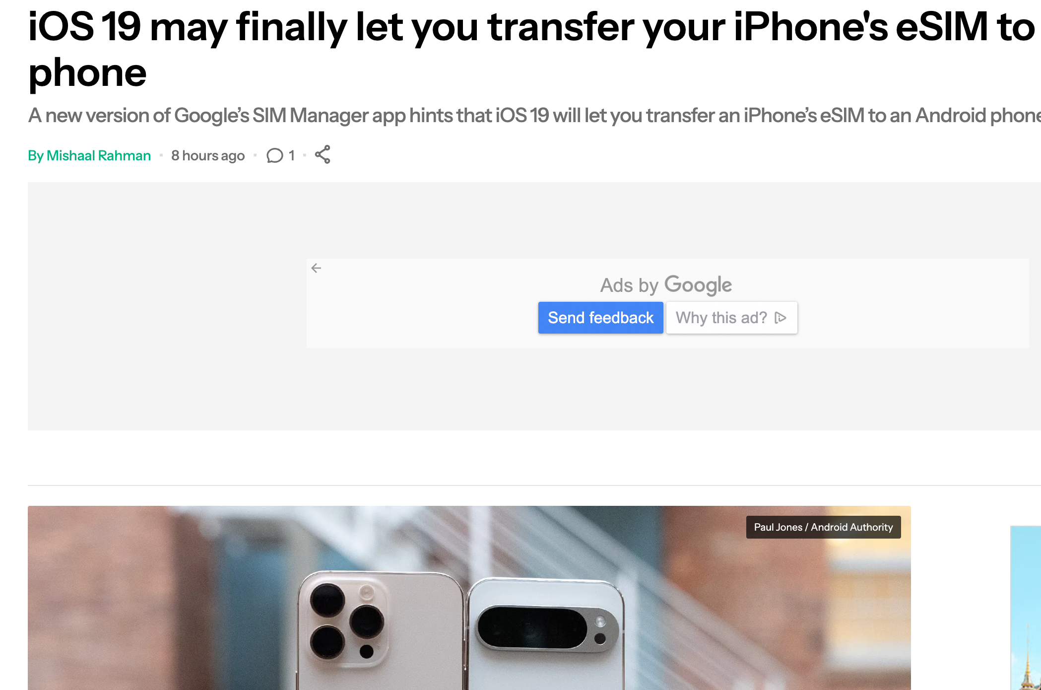 iOS 19 將打破平台壁壘?iPhone eSIM或可直接轉移至安卓手機